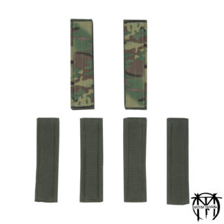 - Moteriškoji dalis skelta (split bar). Skirta užverti ant kilpos arba Molle/PALS juostų.