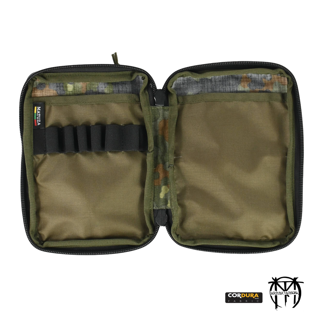 - Dėklo viduje kairėje pusėje – A6 formato dydžio kortelių kišenė su guminėmis kilpomis rašymo priemonėms užkišti.