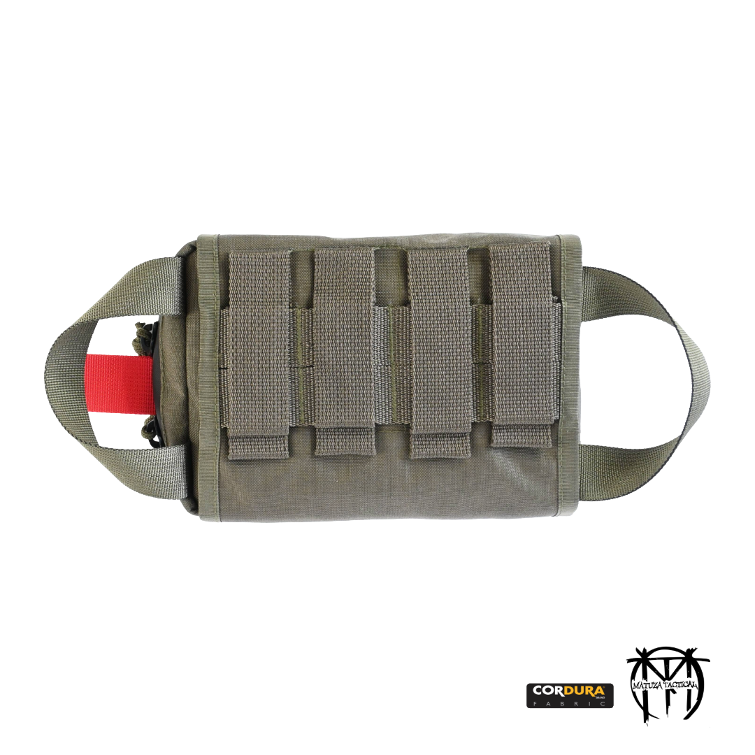 Nuplėšiamas pirmosios medicinos pagalbos priemonių dėklas skirtas būtiniausioms mūšio lauko pirmosios pagalbos priemonėms nešioti. Dėklas yra ištraukiamas iš abiejų pusių.